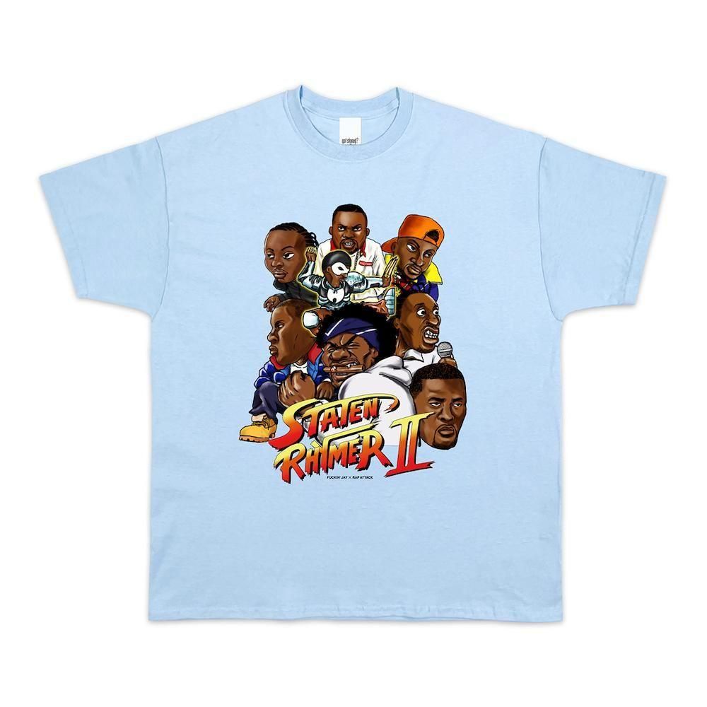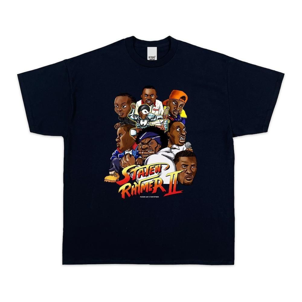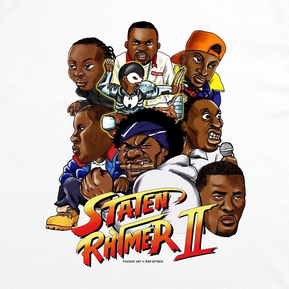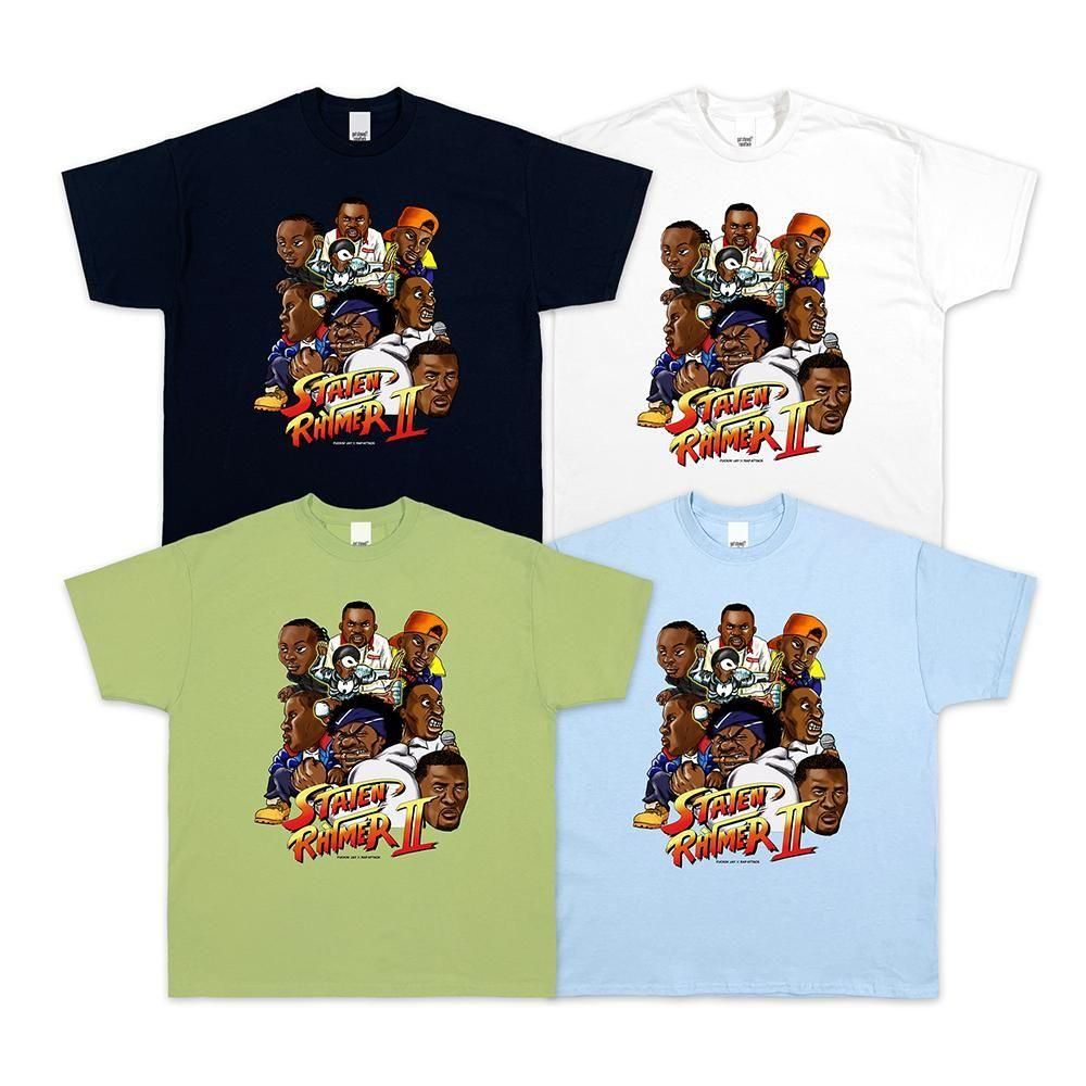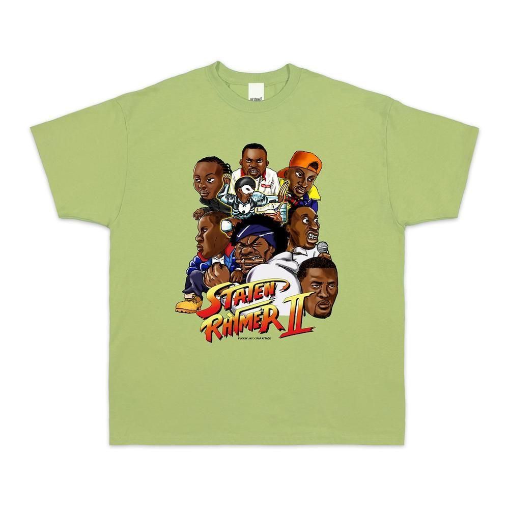 久々のFuckin’ JayとのコラボTシャツは、Wuの面々をスト2っぽく描きあげた1枚です。
