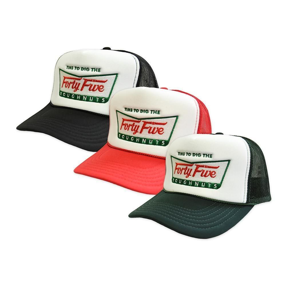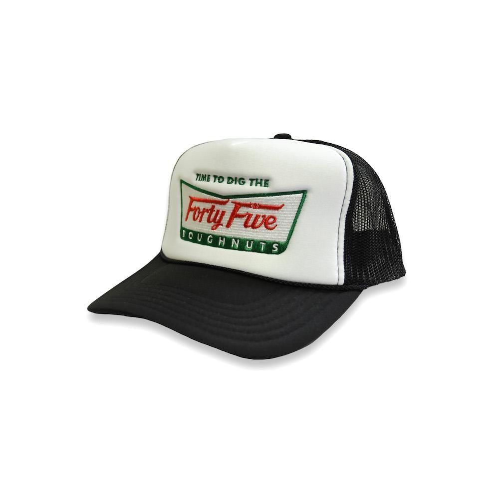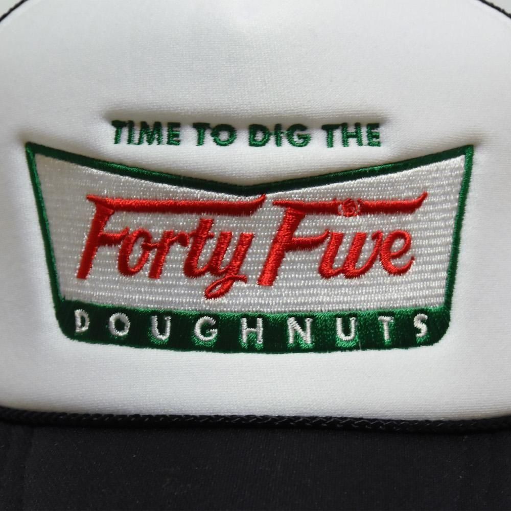 某ドーナツ店のロゴをサンプリングしたデザインを刺繍した、ディガーのためのメッシュキャップです。